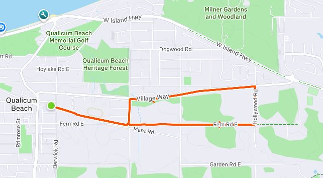 - Qualicum Commons – (former elementary school) entrance on Primrose Street, just south of Fern. Approx. 10-minute walk to start/finish area.